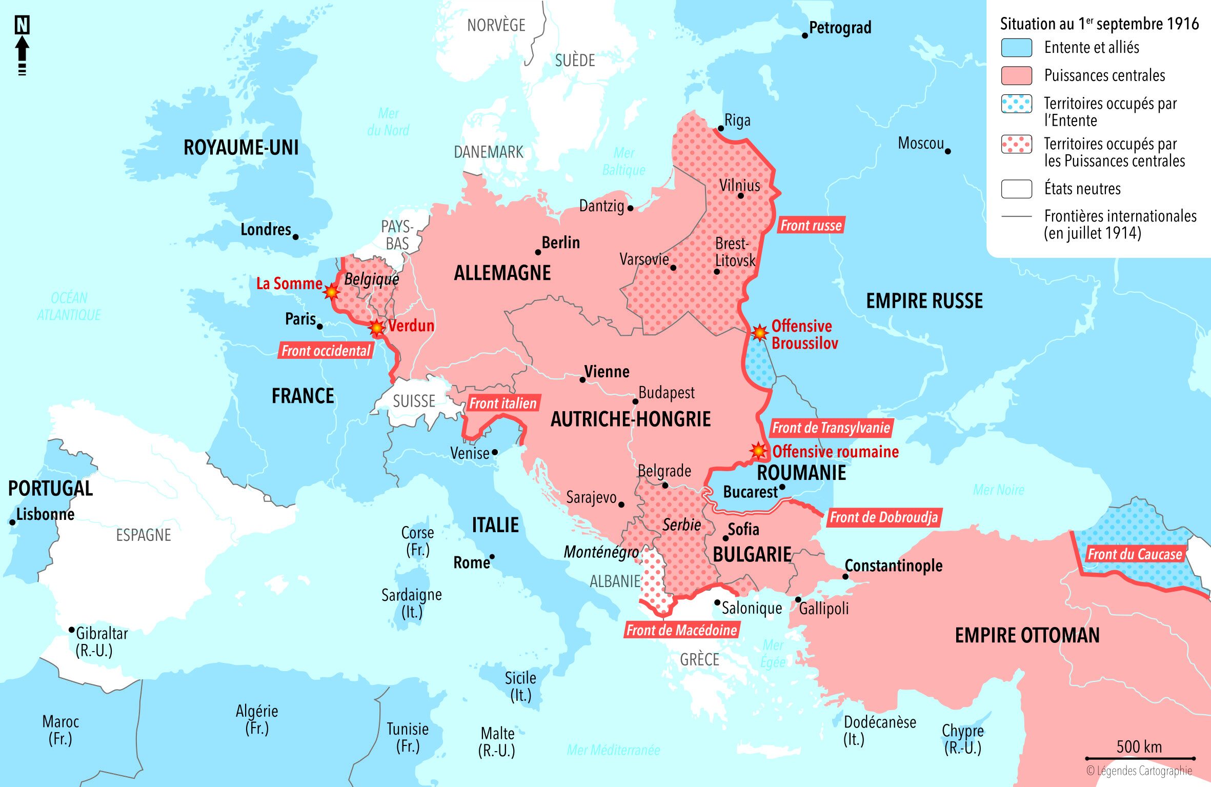 Carte 1 : Les fronts européens, 1er septembre 1916