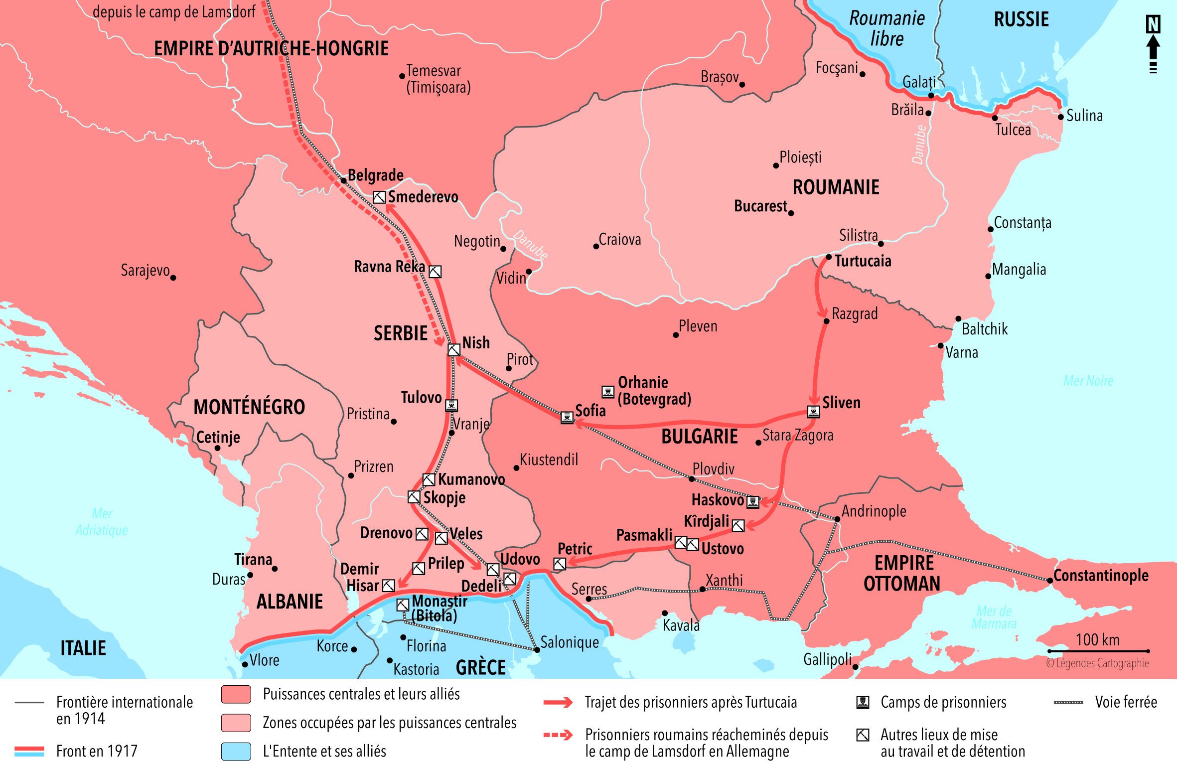 Carte 8 : Les prisonniers de Turtucaia en captivité (1916-1918)